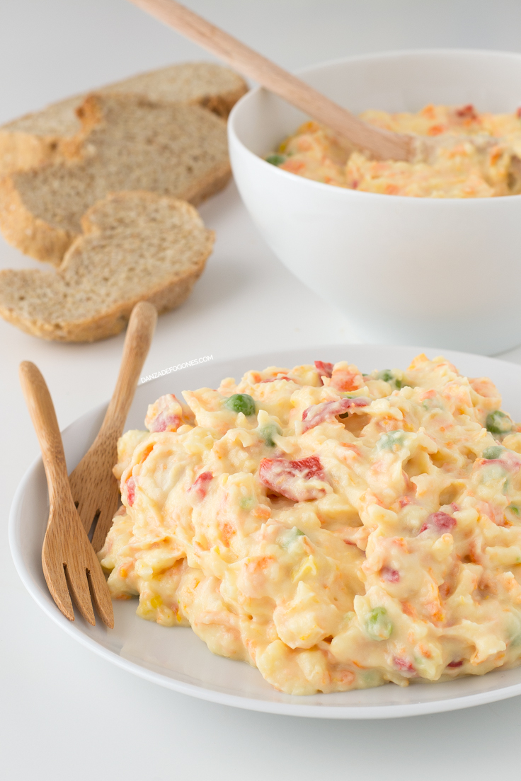 PAPAS, CEBOLLA, PIMIENTO VERDE, PIMIENTO ROJO, ATúN, MAYONESA