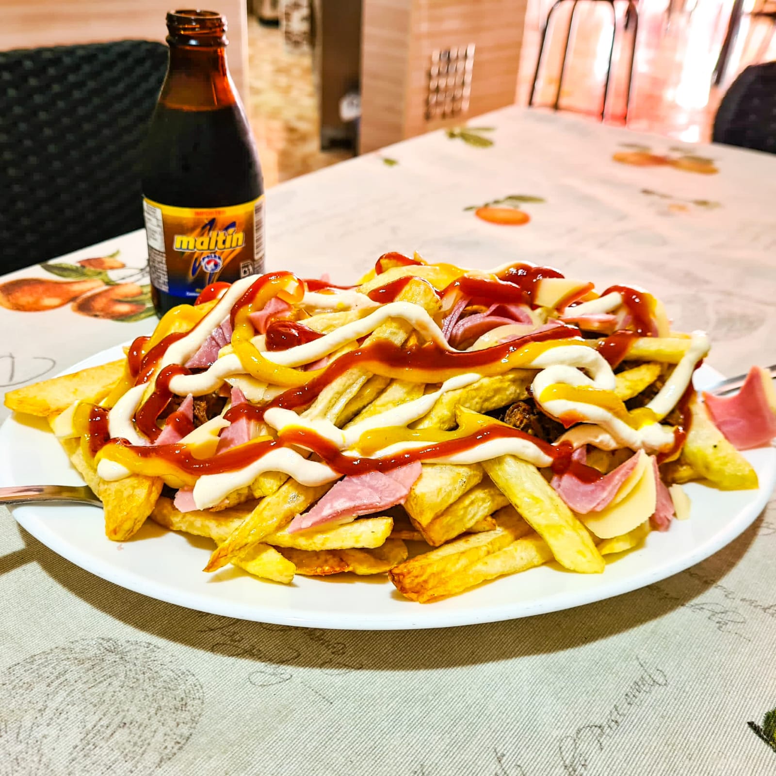 CEBOLLA, PIMIENTO ROJO, PIMIENTO VERDE, ORéGANO, MOJO SUAVE Y PICANTE, ATúN Y MAHONESA